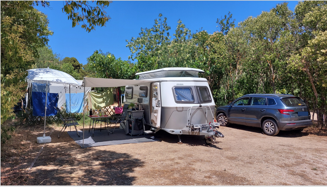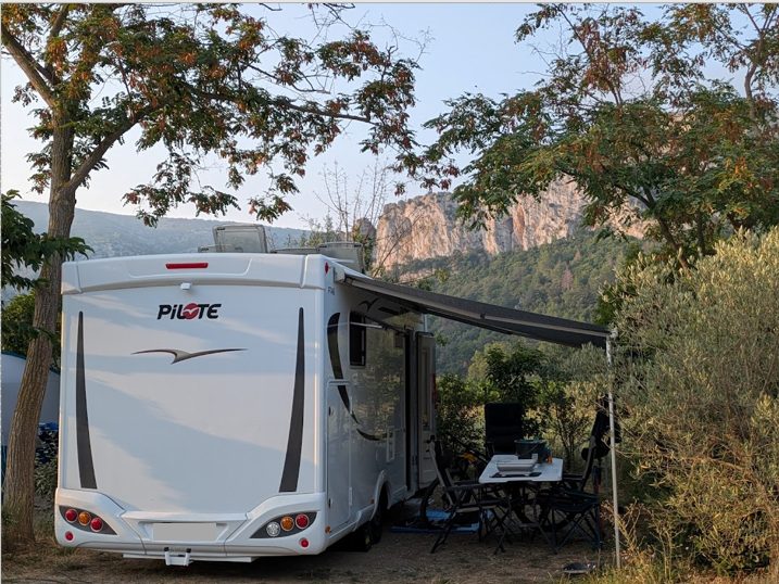 Emplacements ombragés de 90 à 110 m2 pour l’accueil des camping-cars, caravanes et fourgons dont la hauteur dépasse 2,40m.